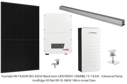 - Hyundai HiN-T435NF(BK) 435W Black on Black 108 16BB Half-Cut Bifacial Solar Panel N-Type TOPCon- SolarEdge Home Hub USE7600H-USMNBL75 7.6kW 1-Ph ...