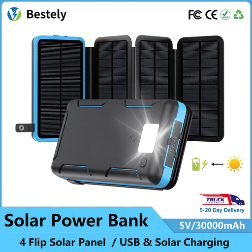 View full details30000mAh Solar Power Bank Flip Panel Large Capacity iOS/Android USB fast charge dual charging solar/Type-C portable for camping