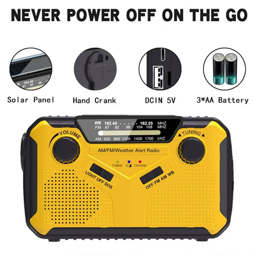 Emergency AM/FM Radio - Solar/Hand Crank/Battery Operated with Flashlight SOS Alarm Charger for Outdoor Survival Camping Storms