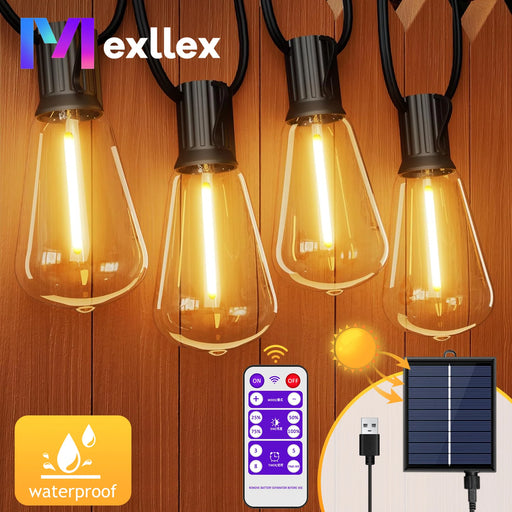 View full details12M/9.5M Solar String Lights Outdoor with Remote, ST38 Patio Lamp & LED IP65 Shatterproof Bulbs, 8 Light Modes for Garden Party
