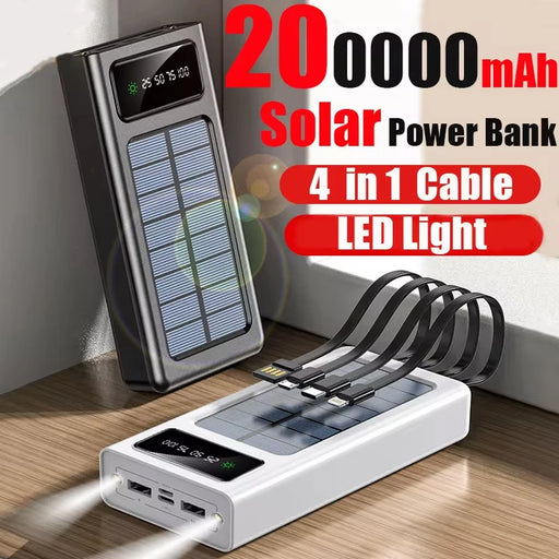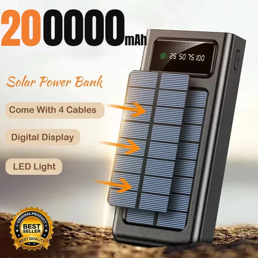 View full details200000mAh Solar Power Bank USB 4 in1 Super Fast Charging Ultra Capacity USB TypeC LED Light Outdoor Power Bank For iPhone Xiaomi