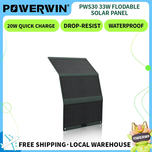 POWERWIN PWS30 33W Local Stock Foldable Solar Panel Type-C USB IP65 Water Soft ETFE for Fast Charge Mobile Devices