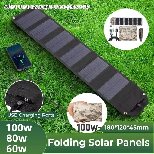 100W/80W/60W Folding Solar Panel USB 5V Solar Charger Portable Solar battery Solar Power Bank for Outdoor Camping Hiking + Cable