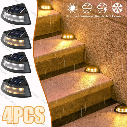 View full details4pcs Waterproof Solar Step Lights Auto Switch Easy To Use Stair Lighting Warm /White Light Solar Powered Garden Walkway Light