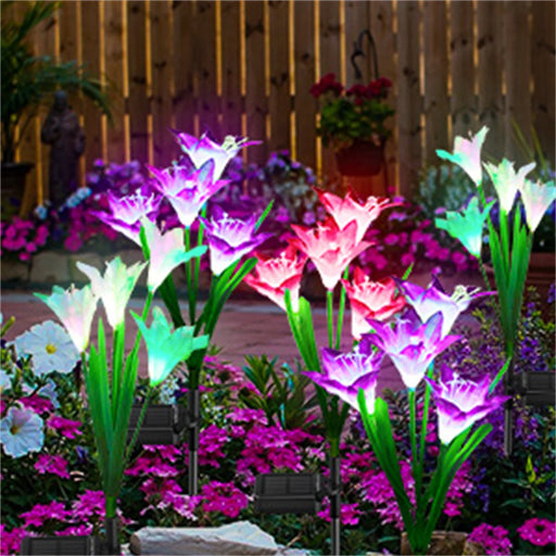 Lily Flowers Solar Light LED Solar Pathway Light Fence Lights Outdoor Waterproof Color Changing Solar Lamp for Yard Garden Pati